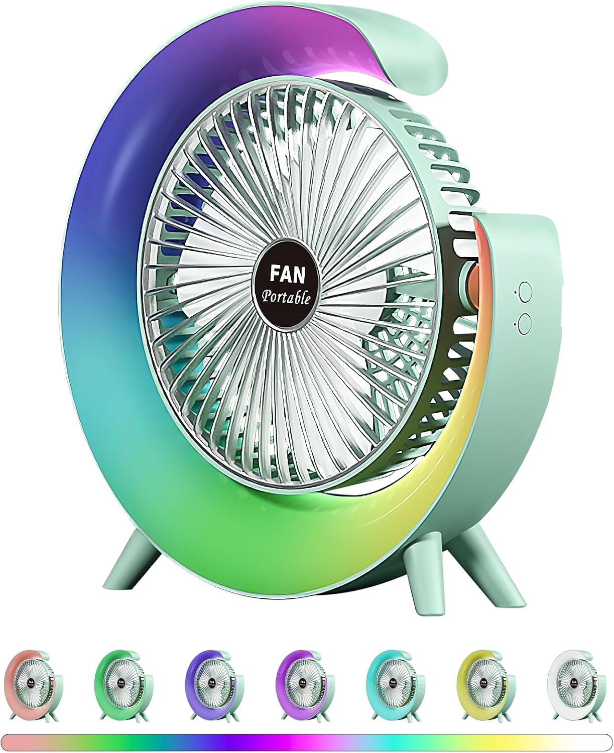 Colorful USB Rechargeable Desktop Fan | Silent Cooling, LED Ambient Light, 3-Speed Rotation