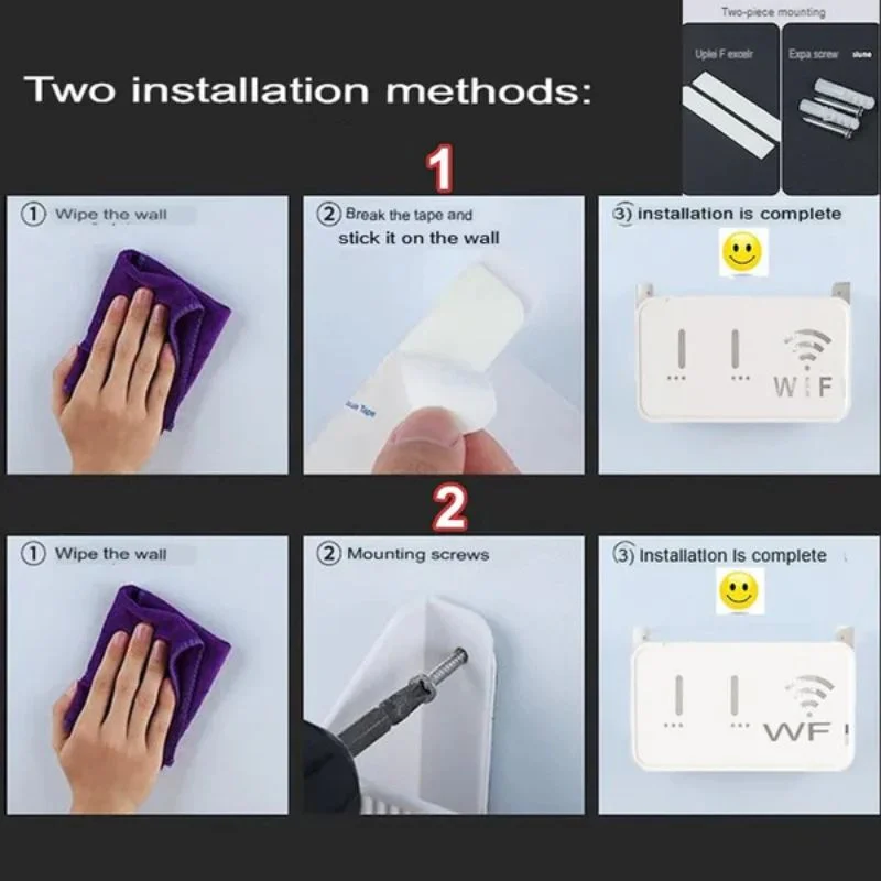 The Self-Adhesive WiFi Router Storage Box & Wall Mount Shelf is a modern, space-saving solution designed to organize and protect your WiFi router, modem, set-top box, and smart devices. Featuring a simple and stylish minimalist design, this wall-mounted shelf blends seamlessly with modern interiors while keeping your devices safe and secure. Made from waterproof and durable ABS material, it offers strong load-bearing capacity and long-term reliability. The built-in cable holes and hidden wire compartment help manage messy cables neatly, while the ventilated structure ensures proper airflow and heat dissipation — maintaining signal quality and extending the life of your router. Ideal for both home and office use, this universal shelf keeps your space clean, organized, and clutter-free.